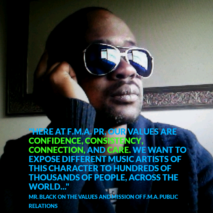 F.M.A. Publications stands by four core values that really embody the type of services we provide our clients. Confidence, connection, consistency, and caring. We have confident team members at F.M.A. Publications, who attract confident artists of all genres as clients. We believe in our clients, and only deal with artists whose body of work show the faith they have in their own product. We believe in making connections. We want to develop lasting business relationships that are mutually beneficial. It is also one of our priorities to know about our clients and what is important to them. Aside from our clients themselves, we are their biggest supporters! We are consistent in our product and services, and everyone that we deal with is left thoroughly satistfied with our work. Most importantly, we care. We care about the representation of your brand. We care about your priorities as the artist and the type of publicity you need.
